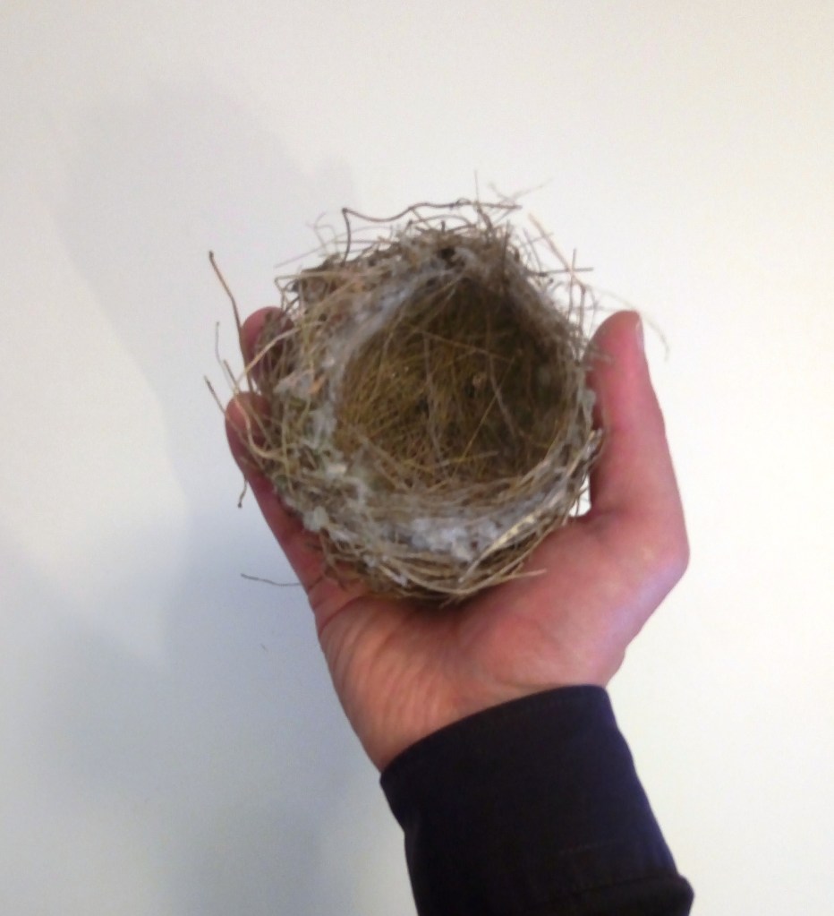 It is interesting to note that the interior of the wall of this nest is stuffed with a kind of feathers that is very soft, silky, and warm and this can only come from the parent birds’ own feathers. Its visible as that grey inner layer in the pictures.