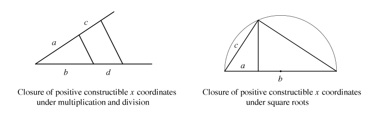1), 2) elementary field theory proves that doubling a cube and trisecting a 60-degree angle are impossible with straightedge and compass